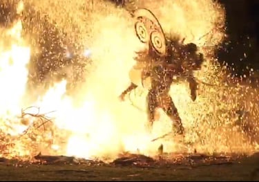 A dramatic night-time ritual where dancers walk through fire.